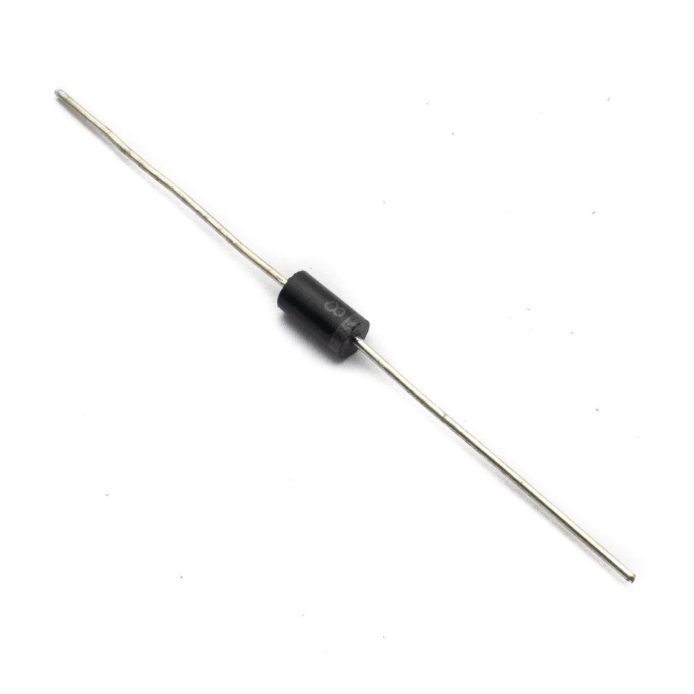The diode is a device that allows current flow through only one direction. That is the current should always flow from the anode to the cathode. The cathode terminal can be identified by using a grey bar as shown in the picture above. For SF28 Diode, the maximum current carrying capacity is 2A it withstands peaks up to 75A. Hence we can use this in circuits that are designed for less than 2A. The reverse current is 20uA which is negligible.